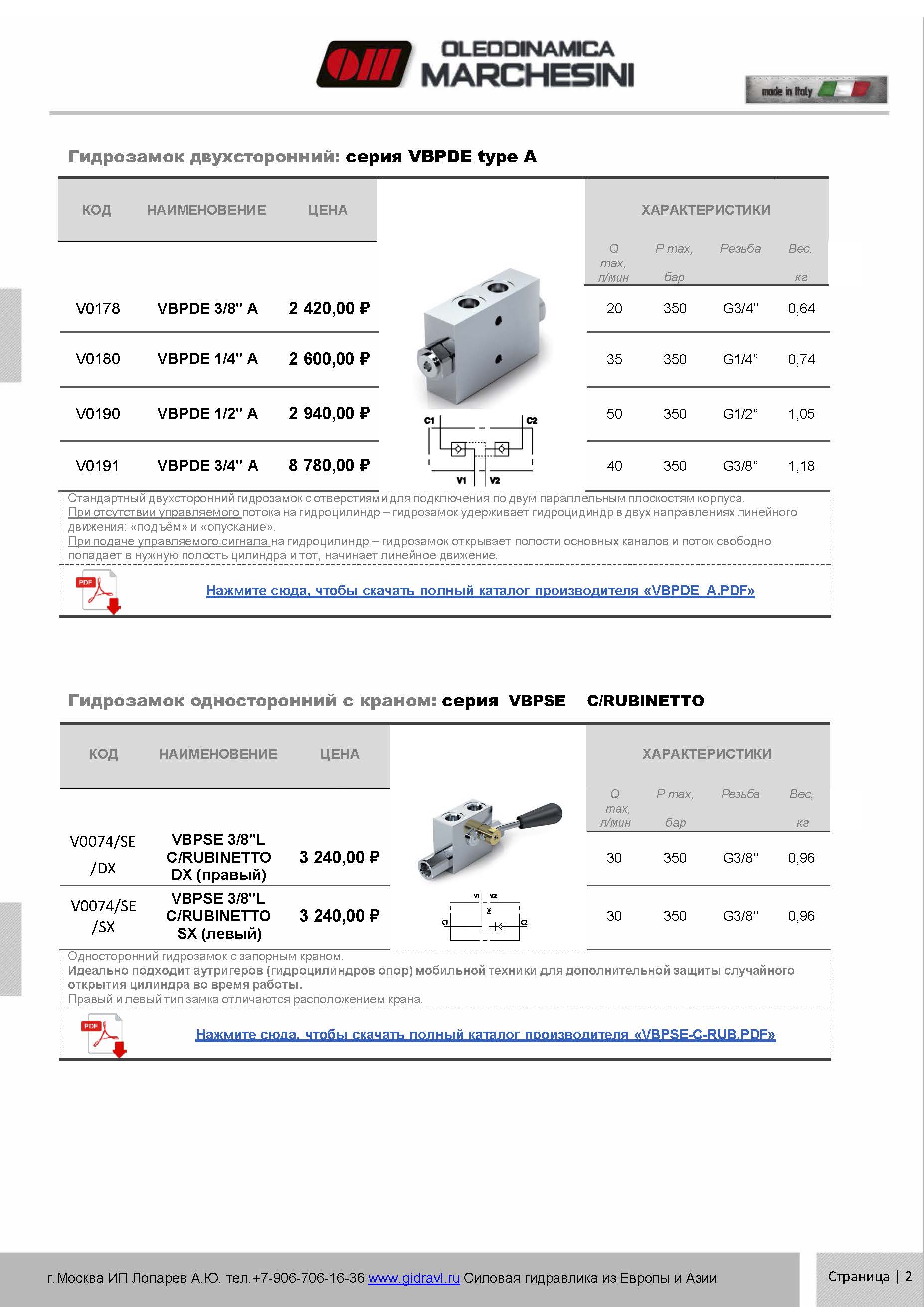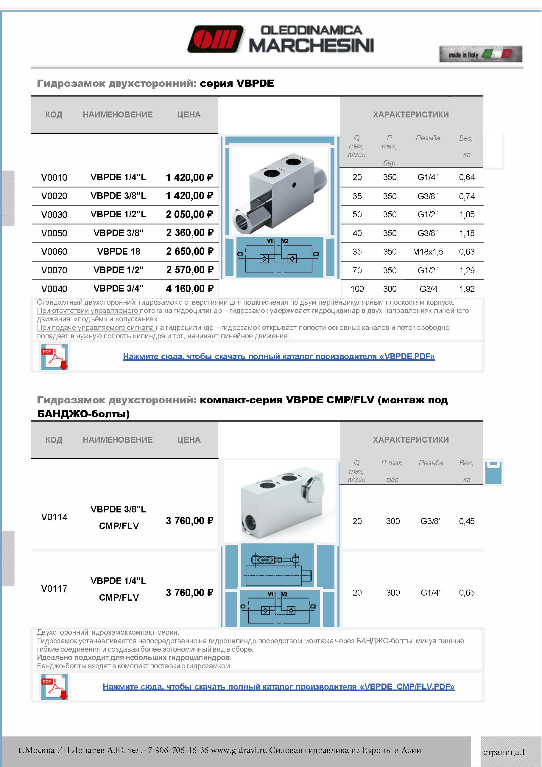 Клапана и гидрозамки от итальянского производителя Marchesini включает в себя качество, надежность и баланс цены